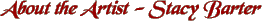Stacy Barter's Oil Paintings depict her intense fascination with light and atmosphere. "I am constantly striving to capture depth and dimension in my oil paintings. Working from life, whether it's from flowers or a model is exhilarating and ever changing. This is my passion, life dedication and contribution". Best in Show Winner of the most prestigious International Competition and 2 year US Museum Tour.