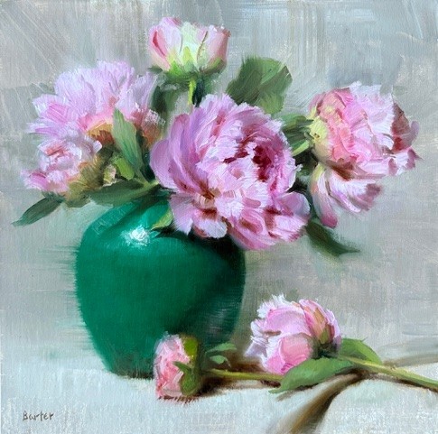 Peony Pinks and Emerald Vase